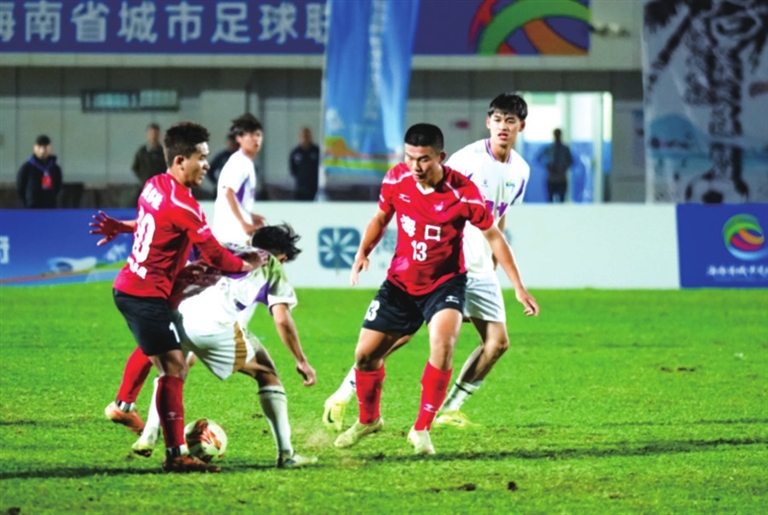 当演唱会声浪涌动之际,海南体育职业技术学院运动场内同样气氛热烈。“启航自贸港”第一届海南省城市足球联赛(海口赛区)揭幕战11月29日打响,海口队与儋州队展开激烈较量。绿茵场上,球员们奋力奔跑、积极拼抢、配合默契。看台上,海口球迷的助威声此起彼伏。