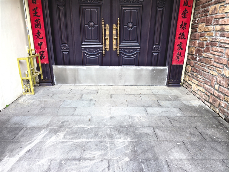 随后,按照吴先生的指引,记者在小区内走访看到,几乎所有别墅业主的门前,都建起一道挡板,避免积水进入屋内。有的用户为了一劳永逸地解决这个问题,直接将门口砌墙堵塞,将门口开设在其他方向。“频繁的积水,家里墙壁都是霉斑,让人非常烦心。”吴先生表示,小区业主也多次向物业公司反映,但一直未得到具体回复。