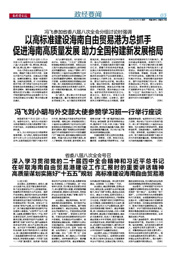 深入学习贯彻党的二十届四中全会精神和习近平总书记在听取海南自由贸易港建设工作汇报时的重要讲话精神 高质量谋划实施好“十五五”规划 高标准建设海南自由贸易港