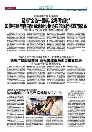 坚持“全省一盘棋、全岛同城化”加快构建与自由贸易港建设相适应的现代化城市体系