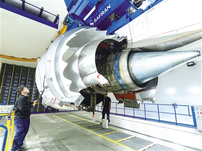 11月28日,在海口美兰空港吉耐斯航空发动机维修工程有限公司发动机试车台,工作人员在作业。