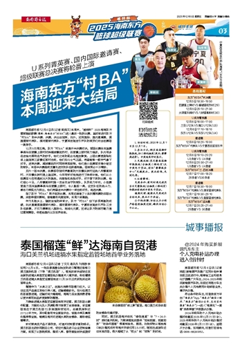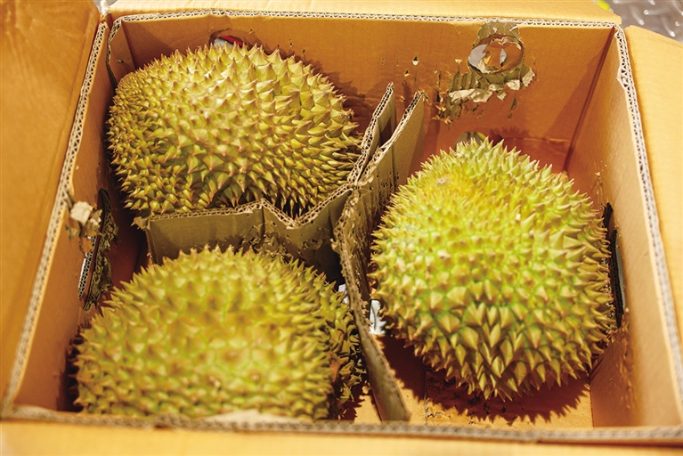 南国都市报12月4日讯(记者 丁文文 通讯员 刘泽群 李如苑)12月4日,一批自泰国曼谷始发的进口榴莲运抵海口美兰国际机场(下称“美兰机场”),落地后被快速转运至全新的进境水果指定监管场地办理通关入境手续,标志着美兰机场进境水果指定监管场地在11月28日正式获批后迎来首单业务。