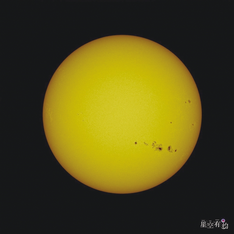 天文科普专家刘仲利叔叔说,这些黑子一般都是成群结队出现的。它们就像一个大家庭,一起组成了一个复杂的磁场系统。一个黑子群会从简单慢慢变得复杂,最后又慢慢消失。小黑子可能只存在几个小时,就像小宝宝一样很快就“长大”了;而大黑子群可能会存在好几周。刘叔叔还告诉我们,这次的黑子群是11月30日第一次出现在太阳的东边,它们会随着太阳的转动慢慢移动。在望远镜里,这些黑子群里有几个特别大的黑子,最大的可能有6、7个地球那么大!如果天气好,在早晨和黄昏的时候,我们用肉眼就能看到这些黑子。