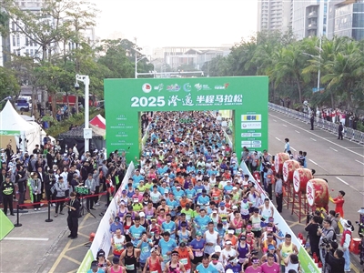本次赛事吸引了来自全国30个省市自治区的参赛者齐聚澄迈,21.0975公里的征程,他们以脚步丈量着这座滨海城市的速度与激情,也沉浸式感受着现代化风貌与自然诗意交融的独特魅力。