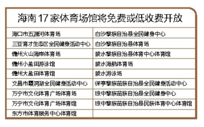 海南17家体育场馆获中央资金补助
