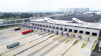 南国都市报12月16日讯(记者 王小畅)12月15日下午,在海口新海港和南港“二线口岸”(货运)集中查验场,货车正排队有序通过闸口。