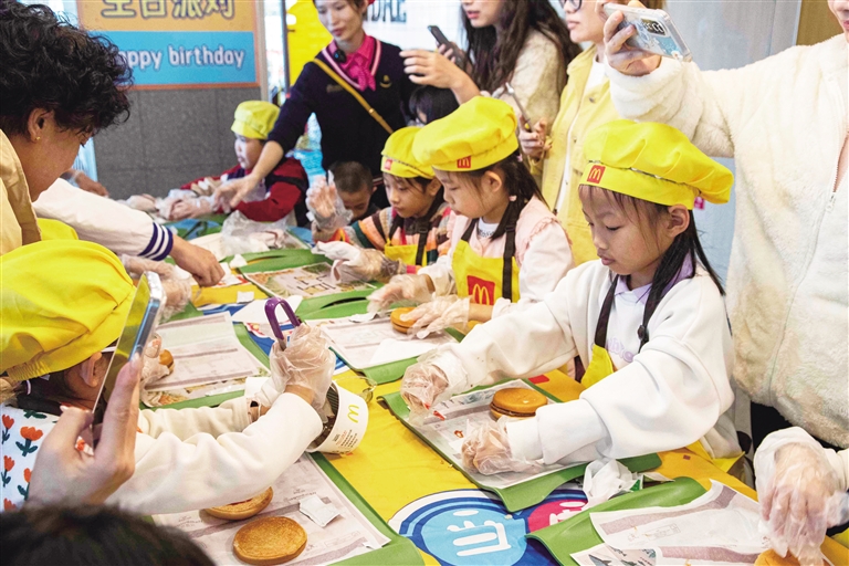 “叔叔,这份《南国都市报》只要1元,您愿意支持一下我们吗?”“姐姐,您看我自己做的汉堡,生菜和肉饼都放得整整齐齐!”12月14日,在麦当劳龙湖光年店内,20名年龄在4~10岁的萌娃,在家长的陪伴下,先后化身“小小厨师”与“小小报童”,用一场从餐厅到街头的沉浸式职业体验,解锁劳动乐趣,感受成长滋味。这场由《南国都市报》联合麦当劳举办的亲子活动,不仅让孩子们过足了“职业瘾”,更成为海口街头一道充满童真与温暖的风景线。