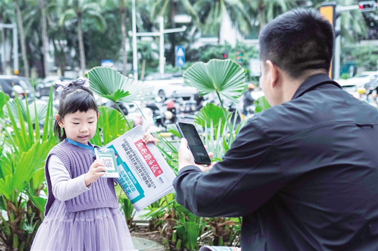 除孩子们现场售报外,海南日报966123热线联合海南日报发行中心全程助力本次活动,一方面为卖报萌娃派送文具,既鼓励小朋友积极参与实践,也号召他们日常向报社投稿习作;另一方面,热线工作人员邀请现场家长及市民扫码加入报料群,方便大家反映身边民生问题、提供新闻线索。“若有优质新闻线索,欢迎随时拨打966123向我们报料!”工作人员在现场热情倡议。