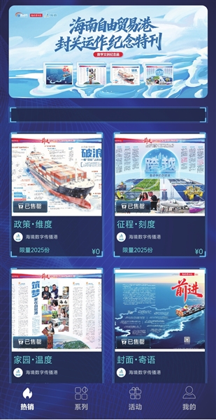 南国都市报12月18日讯(记者韩星)2025年12月18日,海南自贸港正式启动全岛封关。《南国都市报》特别推出纪念特刊,通过编年体大事记梳理自贸港发展关键节点。海境数字传播港平台同步推出《南国都市报》封关纪念特刊数字文创纪念品,上线不到两小时,4款各2025份、共8100份数字文创产品便被用户尽数领取,印证了文化纪念与技术创新结合的强大吸引力。