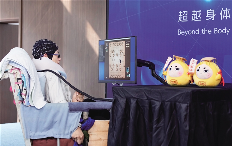对弈中,他时而凝神思索,时而轻轻颔首,屏幕上的棋子便循着思路稳步推进。“这是我第一次不用手,不用鼻子,而是用想法下棋。”赛后,韩彬彬用艰难却清晰的语气分享着这份独特体验。从“鼻尖触控”到“意念操控”,脑机技术的介入为他打开了一扇全新的表达之门。