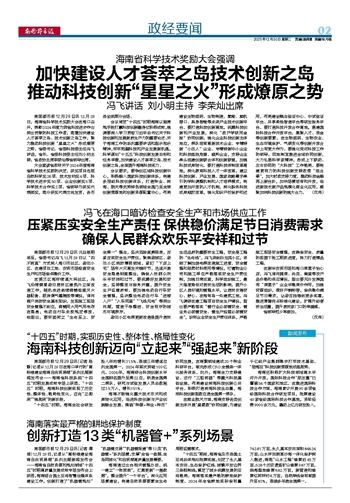 海南省科学技术奖励大会强调~~~冯飞讲话 刘小明主持 李荣灿出席