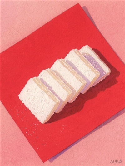 打开红纸包,一叠切得方方正正的糖片糕露出来——“这是海南老乡建议我买的,说霍先生喜欢吃甜的。”姑娘有点不好意思地挠挠头,说:“我昨天特意请假去东方红路(现在的博爱南路)买的,这是红星食品厂的招牌点心。”