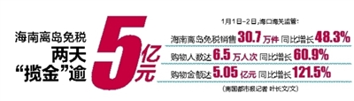 八方来客催热消费市场。去哪儿旅行数据显示,元旦期间飞往海口、三亚的机票增幅全国最高,多个免税店附近酒店入住量同比增长超1倍。