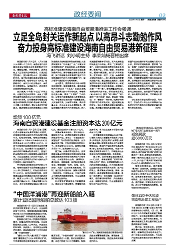 海南自贸港建设基金注册资本达200亿元