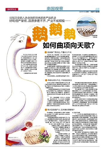 琼海温泉鹅入选全国名特优新农产品名录 好吃但产量低、品质参差不齐、产业不成规模……~~~