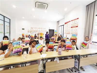 搬来桌椅和多媒体设备,再架上黑板……在海口市美兰区蓝天街道办事处,一间宽敞明亮的会议室摇身一变成了孩子们的暑期温馨课堂。手工课上,一块块橡皮泥、一支支画笔在小手里翻飞,一件件充满童趣的作品新鲜出炉。除了绘画、手工、互动游戏等趣味项目,托管站还特别邀请消防、急救等部门的专业人员走进课堂,为孩子们带来实用的防火安全、儿童急救知识讲座,让孩子们在玩中学、学中悟。