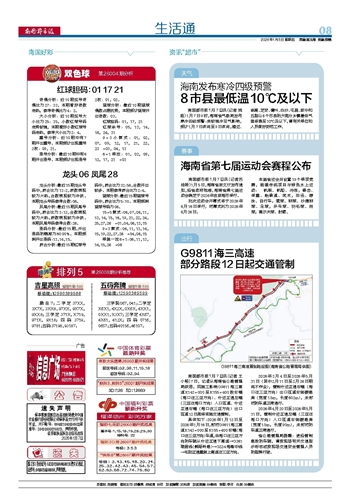 南国都市报1月7日讯(记者 王小畅)7日,记者从海南省公路管理局获悉,因施工影响G9811海三高速K143+000至K155+400段右幅(海口往三亚方向)、什运互通左幅(三亚往海口方向)入口匝道、什运互通右幅(海口往三亚方向)出口匝道12日起将实施交通管制。