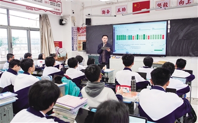 智慧设备的投用带来的不只是教学上的改变。初三(10)班物理老师吴庆博介绍,智慧设备中的软件资源非常丰富。“对于课后的反馈,我们可以使用学情分析系统,错题分布系统会自动生成平均分、得分率、完成率等数据。通过题目得分率柱状图,直接标出学生在物理知识点题型上的短板。”系统还可以追踪学生后续对薄弱知识点的掌握情况,结合整体得分率和个体错题数据,进而延伸出成绩详情。