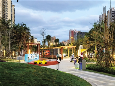 在海口市琼山区振发路与振群一街交汇处的振发小游园内,绿树成荫、整洁的休闲道路两旁,儿童沙池、休闲长椅、健身器材一应俱全。有的市民带着孩子到这里玩耍,有的市民到这里锻炼健身……公园内热闹非凡。“步行几分钟就能来到公园,有地方遛娃了,我们老人也有了放松的地方。”家住凤翔花园小区的市民张大姨说。