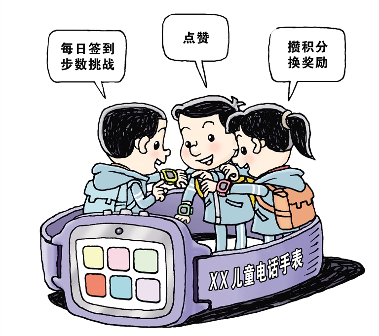 放学时分,几个小学生围拢在一起,兴致勃勃地摆弄着电话手表。“你不给我点赞,就别跟我一起玩了。”一个孩子说。这是记者日前在广州某小学门口看到的场景。