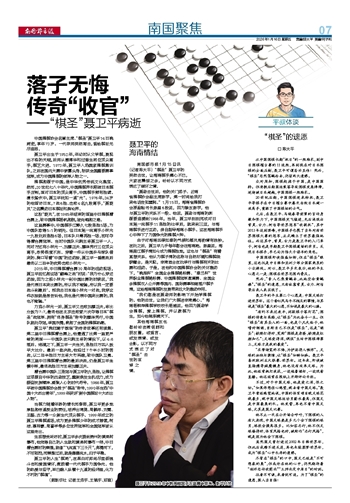 “聂老去世后,他的关门弟子、云南省围棋协会副主席陈宇,第一时间给我打来电话告知噩耗。”1月15日,海南省围棋协会原副秘书长陈星6段说,因为挚友陈宇,他与聂卫平的关系不一般。他说,聂老与海南的渊源要追溯到1988年,当年,聂卫平刚刚完成对日本超一流棋手11连胜的壮举后,就来到三亚,与海南棋手进行互动,亲自指导海南小棋手。这在海南棋手心中种下了为国争光的围棋火种。