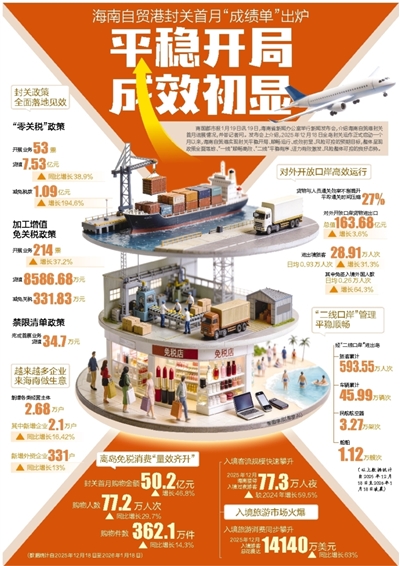 南国都市报1月19日讯 19日,海南省新闻办公室举行新闻发布会,介绍海南自贸港封关首月进展情况,并答记者问。发布会上介绍,2025年12月18日全岛封关运作正式启动一个月以来,海南自贸港实现封关平稳开局、顺畅运行、成效初显、风险可控的预期目标,整体呈现政策全面落地、“一线”顺畅高效、“二线”平稳有序、活力有效激发、风险整体可控的良好态势。