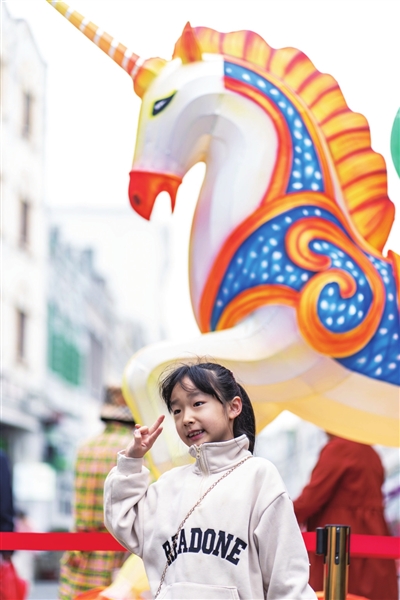 整条骑楼老街被精心打造成一座巨型“福气乐园”,创新性划分“福、禄、寿、喜、财”五大主题街区,每区均由一尊特色神骏装置“镇守”,寓意新春福运满堂。