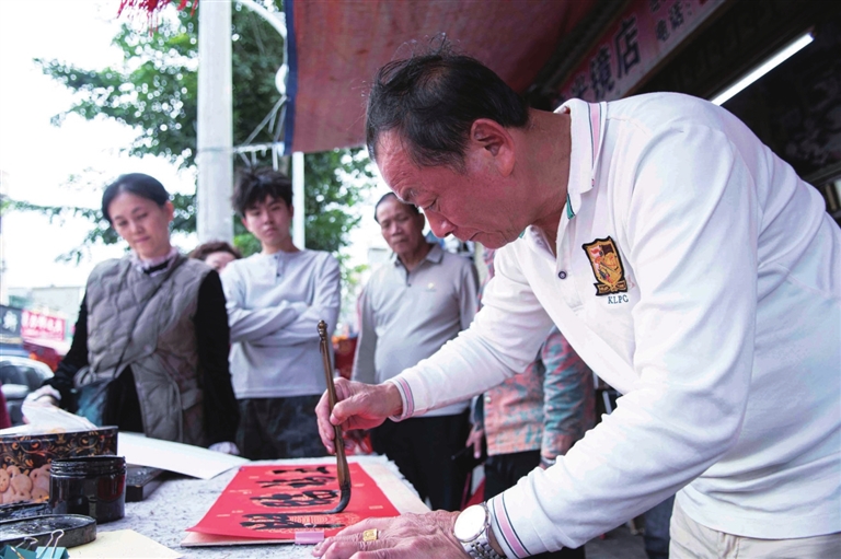 相较于易“撞脸”的印制春联,青睐手写春联的市民日渐增多,不少店铺的手写春联成为畅销款。民间书法家现场挥毫泼墨,不仅吸引了中老年人,更成功圈粉大批年轻人。