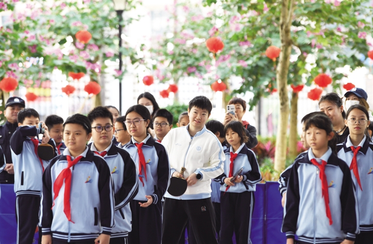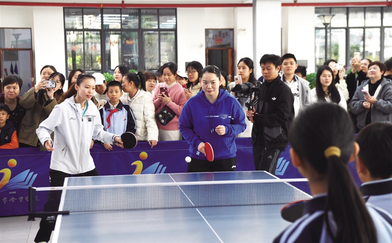 海口市金宇学校校乒队队员林紫桐感慨,平时在电视上看国乒队员拼搏的样子,如今能近距离交流学习,收获满满。校乒队教练周日明介绍,近年来乒乓球运动在海口校园广泛普及,此次国乒队员的到来,为孩子们提供了宝贵的学习机会,激励着他们刻苦训练、奋勇争先。