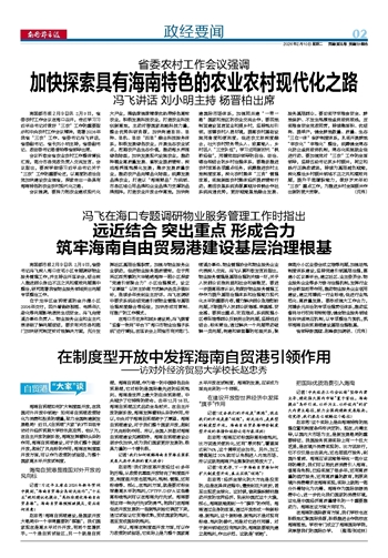 远近结合 突出重点 形成合力 筑牢海南自由贸易港建设基层治理根基