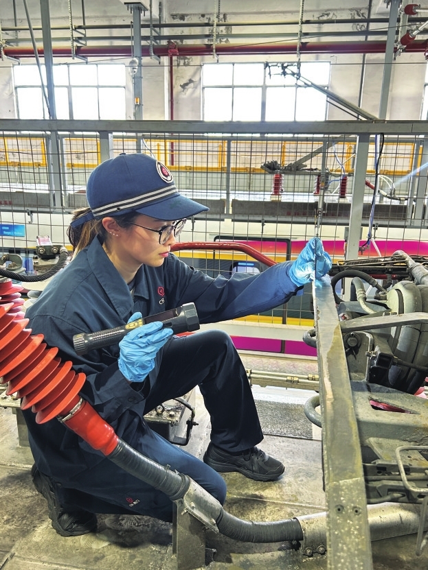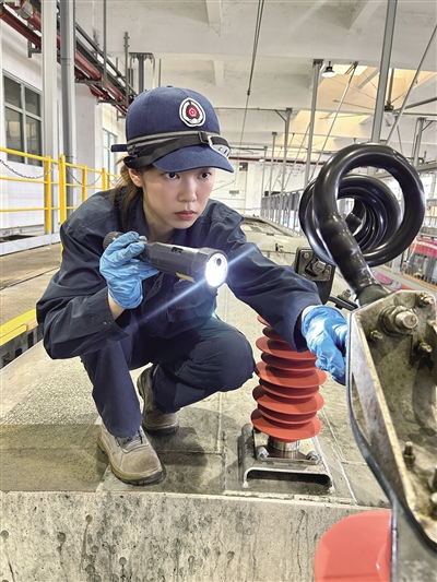 “姑娘们心细,有些小毛刺、细微裂痕,她们更容易发现。”老师傅说。深夜的检修库并不安静,工具碰撞声、对讲机呼叫声此起彼伏。