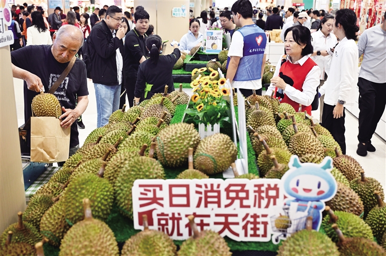 出示身份证、系统自动核验额度、扫码支付,短短几分钟,海口市民陈女士就完成了她在日用消费品免税店的首次购物,拎着马来西亚进口鲜果榴莲满意而归。