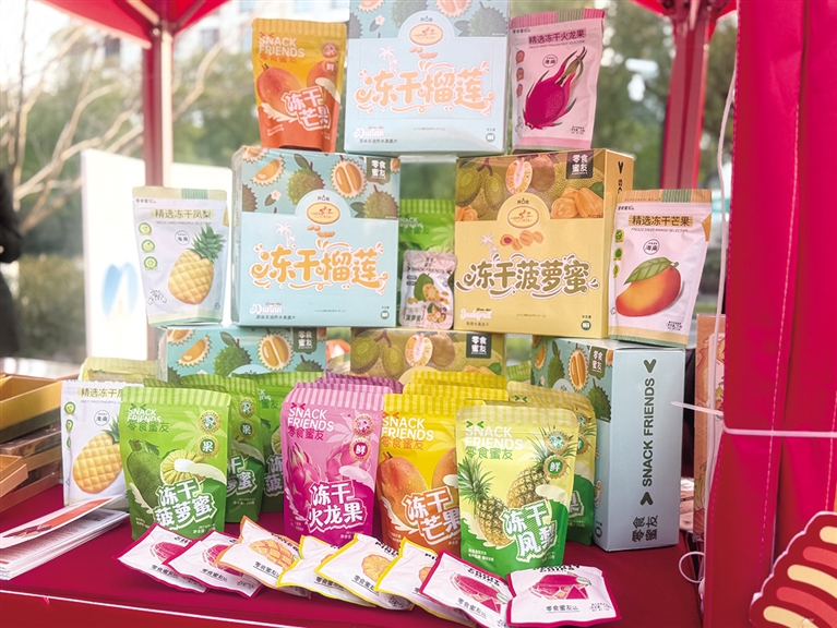 消费场景的拓展让海南年货融入更多生活片段。如针对“年货外卖”“居家自制”的趋势,不少企业推出了半成品礼盒,切块文昌鸡、糟粕醋汤底、全套椰子鸡等预制食材,让消费者春节在家就能轻松做出海南风味大餐;在“热带水果”与“健康”等消费关键词愈发为消费者所接受的当下,一些海南企业还选择将二者结合,打造出冻干榴莲、冻干菠萝蜜、冻干火龙果等多款冻干产品,有着真实瓜果肉香的同时还健康营养,又方便携带,依托线上渠道,同样成为今年海南年货销售中的亮眼产品。