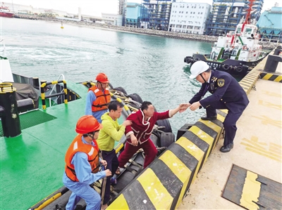 洋浦海上搜救分中心协调“中国海警23024”和“厦港拖18”轮赶往事发海域接驳渔民。同时,指派洋浦海事局神头海事处人员提前抵达逸盛码头,安排6号泊位作为人员上岸点,并通知120急救中心派救护车提前就位。