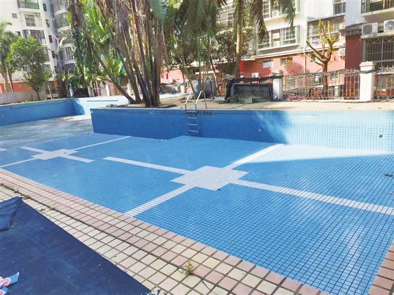 海口吉宝佳园小区 开发商未报建,经营许可证难办 泳池荒废两年