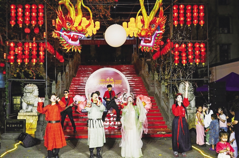 元宵游园会:3月3日那大会场设有套活鸭、传统投壶、趣味射箭、猜灯谜等民俗互动,“苏小坡”IP人偶与宋朝服饰巡游派发数字红包。