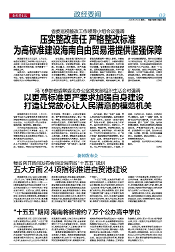压实整改责任 严格整改标准 为高标准建设海南自由贸易港提供坚强保障