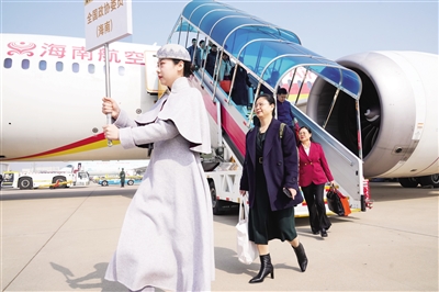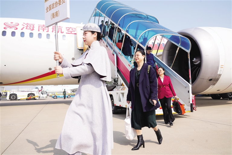 南国都市报3月3日讯 3月3日,肩负全省人民的期盼和重托,出席十四届全国人大四次会议的海南代表团代表搭乘班机抵达北京。
