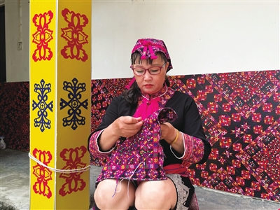 赵海金在制作苗绣作品。(记者 潘頔 摄)