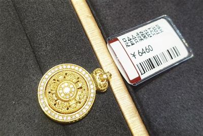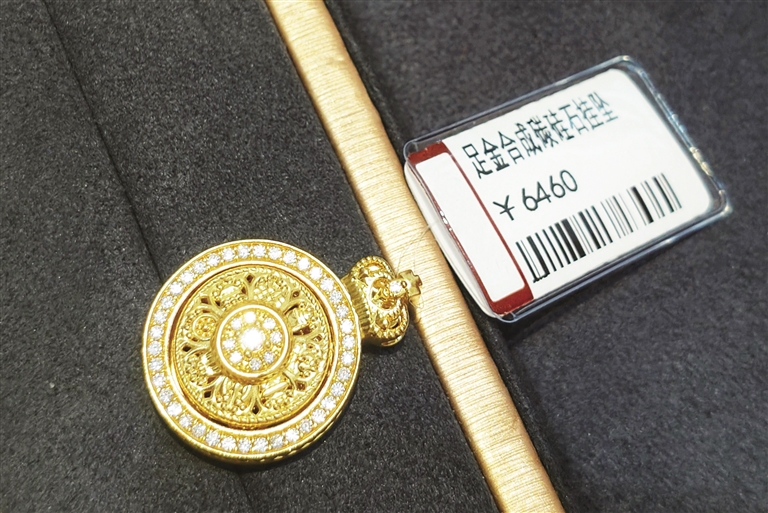 在琼山区周六福珠宝店,“一口价”金手链与克重足金手链混合摆放,价格标签相互层叠,消费者难以快速区分;吊坠区域的“一口价”金饰,价格吊牌被藏在首饰底部,一款售价6000余元的吊坠,标签正面没有标注克重。“这几个吊坠按件销售,款式不同,售价和工费也不同。”店员称,现在以这个价格购买,以后仍可按同样价格换新款,工费多退少补,“还是比较保值的”。