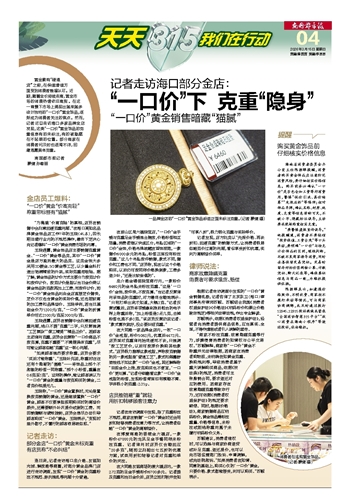 “为掩盖‘价高克轻’的真相,店员在销售中会刻意回避克重问题。”在海口某知名品牌黄金饰品店工作7年的玉珠(化名),因长期目睹行业内的不规范操作,最终下定决心向记者爆料“一口价”黄金消费市场的内幕。