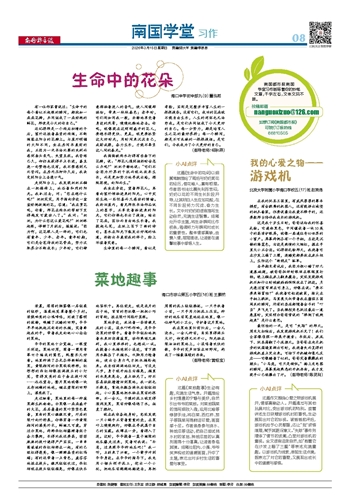 走到阳台上,我发现奶奶正躺在一把摇椅上,沐浴着和煦的阳光。我趴过去,问:“您在想什么呢?”奶奶笑笑,用手指向旁边一盆盆娇艳欲滴的花,答道:“我在赏花呢,你看,那花在雨水的帮助下变得越发可爱动人了。”我问:“奶奶,为什么您这么爱花呢?”奶奶眯起眼,停顿了片刻后,缓缓说:“因为啊,这花跟人是一样的,它们也有童年、少年、老年。童年时期,它们是含苞待放的花骨朵,努力汲取养分不断成长;少年时,它们肆意挥洒着迷人的香气,使人间馥郁缤纷,带来一抹抹春色;老年时,它们则如同我一般,安静地享受着身边的风景,慢慢优雅地老去。你呢,就像现在这刚刚盛开的花儿,要想长得更快、更美,就更要抓紧这大好时光,用时间来沉淀自己,戒骄戒躁,奋力生长,才能不辜负这人间的春光。”