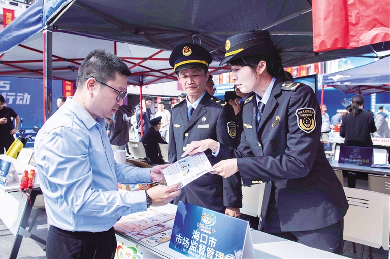 南国都市报3月15日讯(记者 蒙健 文/图)3月15日上午,海南省“3·15”国际消费者权益日主会场活动在海口举办,此次活动主题为“走近3·15,市场监管在行动”,旨在强化消费维权宣传,营造放心消费环境。