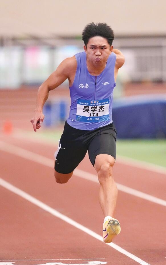南国都市报3月28日讯(记者陈望) 3月27日,2026年全国室内田径锦标赛在山东开赛。海南选手吴学杰在男子60米决赛中以6.65秒夺得冠军,这是海南选手第一次登上全国室内田径锦标赛男子60米短跑冠军领奖台。