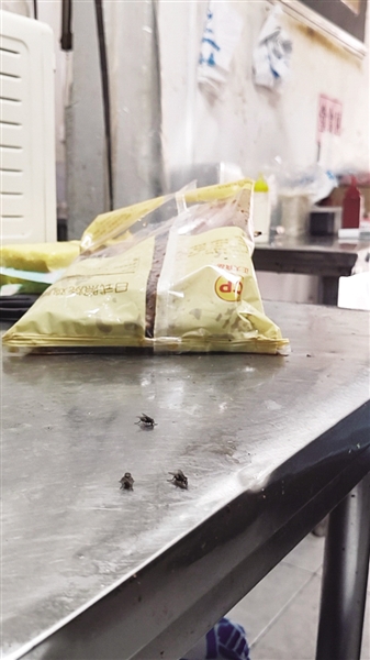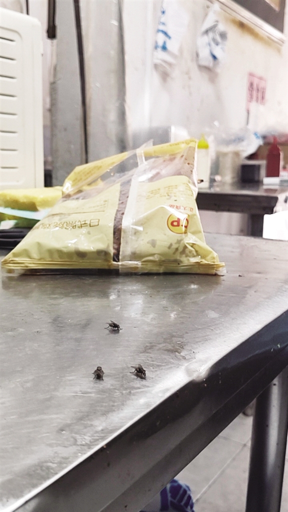 执法人员介绍,两份证照的核心区别,仅在于地址中“商铺”与“铺面”一字之差,实际经营门店却只有眼前这一间餐饮店。记者注意到,该餐饮店同样存在“三防”(防鼠、防虫、防蝇)设施不到位的问题,操作台旁的一盆面条上,还落着几只苍蝇,卫生隐患突出。