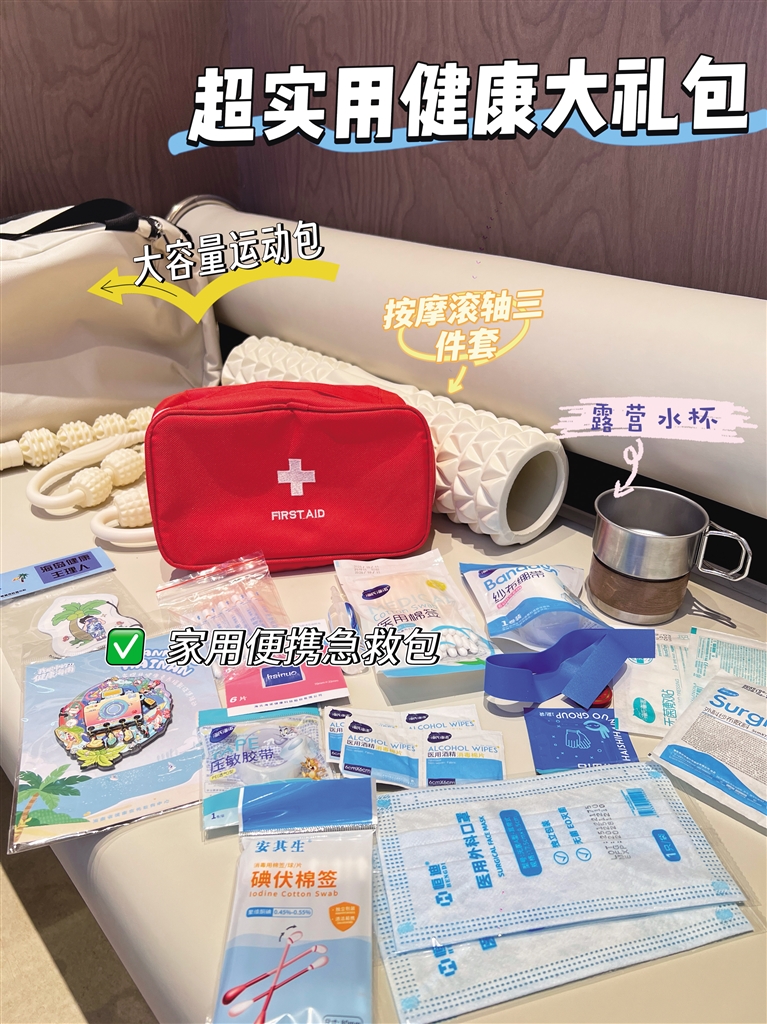 参加投稿的网友,有机会赢取活动方准备的精美实用礼包。除了专属定制的冰箱贴,还有超级实用的健康大礼包,内有超大容量的运动包、按摩滚轴三件套、家用便携急救包、露营水杯、海岛健康主理人专属卡片等。