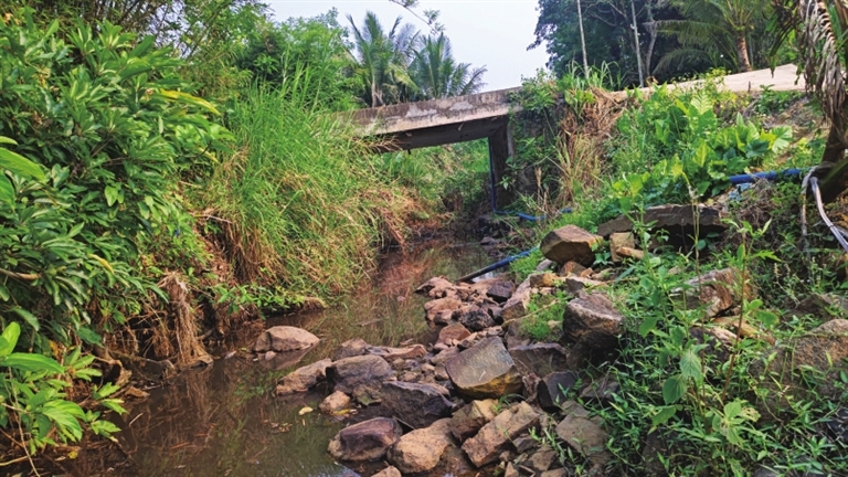 据颜先生反映,今年清明节前,他抽取河水灌溉沉香苗木后,作物出现大面积叶片发黄、焦枯、坏死等情况。“这家养猪场没建的时候,河水很清澈。”下游区域一名种植户说,养猪场开设后,未经有效处理的养殖废水直接排入河道,导致河水发黑发臭。“我们一直靠这条河浇地,下游多个村庄也靠这条河生活生产。现在河水又黑又臭,以后怎么种地,更不用说饮用。”