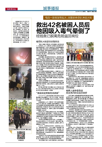 救出42名被困人员后 他因吸入毒气晕倒了