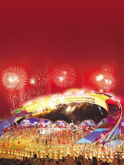 4月22日,第六届亚洲沙滩运动会开幕式在三亚举行。新华社发