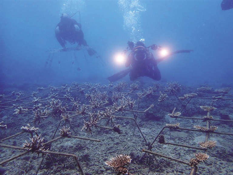 十余年来,王爱民团队不断调整、优化海洋牧场建设方案,蜈支洲岛的海洋生态环境逐渐优化。